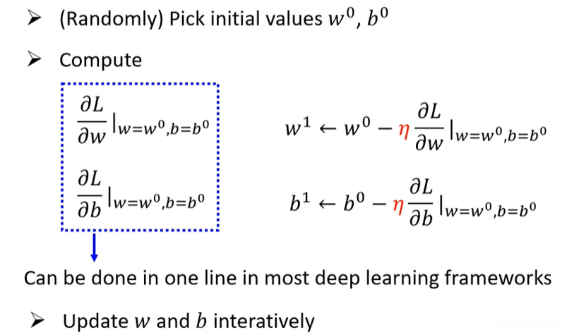 找到一组最小的一组w和b能够使L最小的方法——Gradient Descent