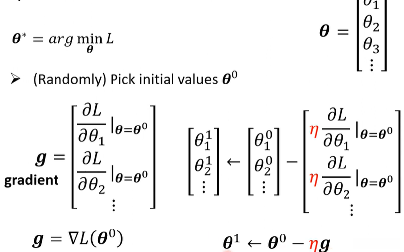 (二)对每一个未知参数都去计算它对L微分,之后集合起来就是一个向量,称为Gradient