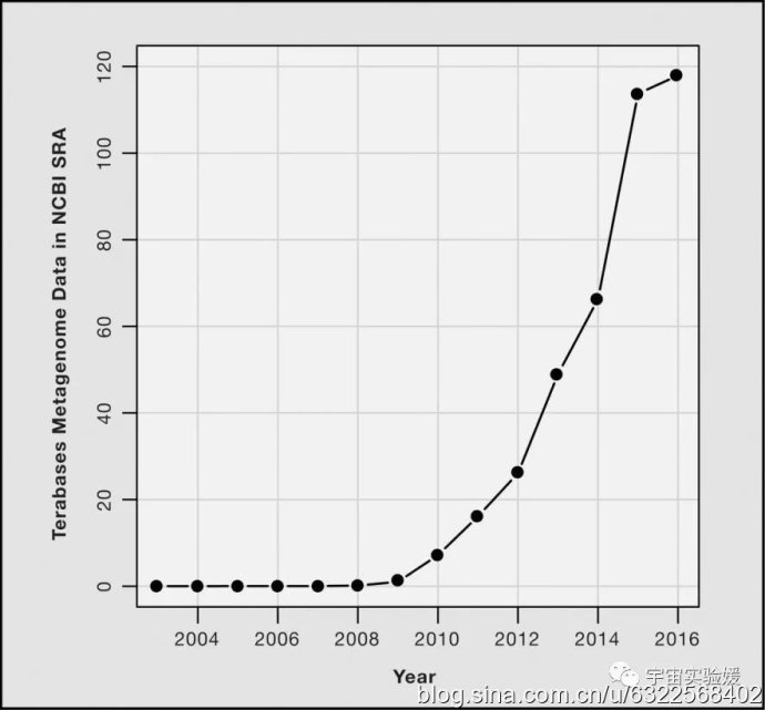 图3. NCBI Sequence Read Archive鸟枪法宏基因组测序数据的增长(doi: 10.1016/j.cell.2016.08.007)