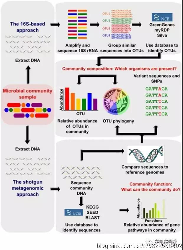 图1. 宏基因组学研究的生物信息工作内容(doi: 10.1371/journal.pcbi.1002808)。