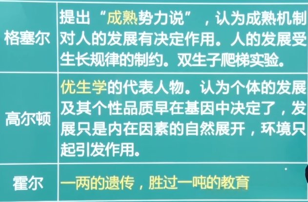 孟子性善论,弗洛性本能,威尔基因复,格赛尔变成熟(双子爬梯实验)