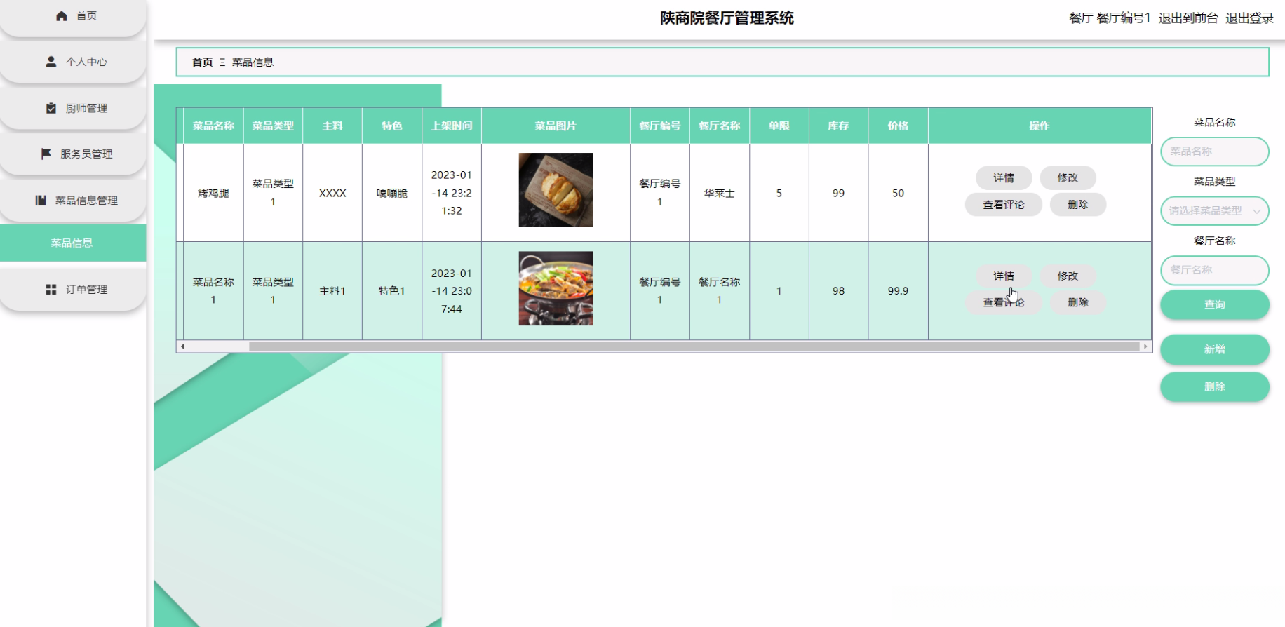 对于陕商院餐厅管理而言,本项目的实施具有深远的意义。首先,它显著提升了运营效率,并通过自动化管理减少了人工操作失误及延误。其次,在线预订、菜品浏览和评价反馈等功能的提供有助于提升师生就餐体验,并使餐饮服务更加贴合用户需求。再者,在强化食品安全方面做出了重要改进,在食材采购、加工、销售等环节实现了全过程监控,并通过数据分析功能帮助管理者精准把握销售数据以优化菜品配置与库存管理等业务流程