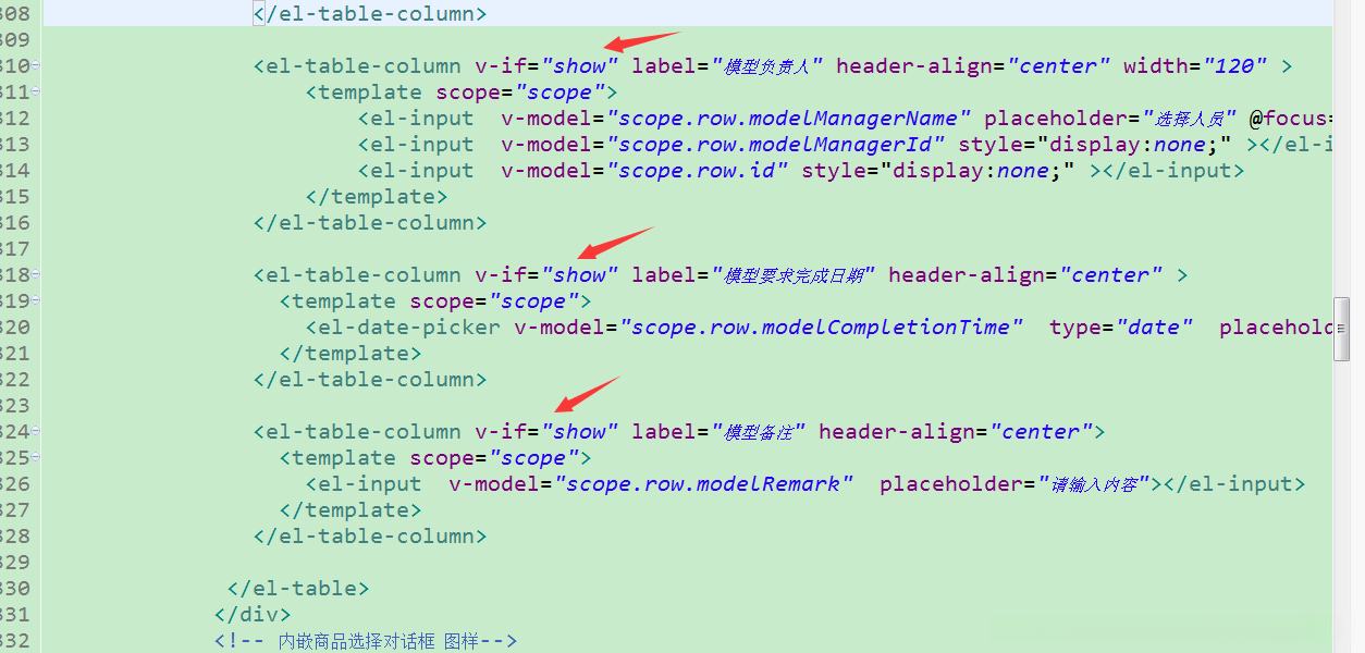 <eltablecolumnvif=showlabel=模型备注headeralign=center <templatescope=scope <elinputvmodel=scope.row.mod...