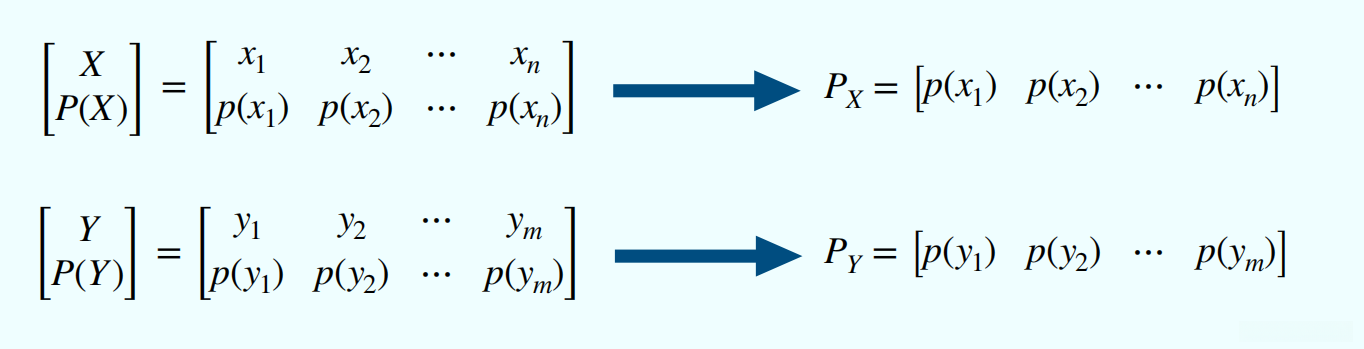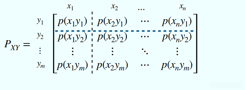 依据联合分布矩阵可以写出边缘分布矩阵 Px , P ;