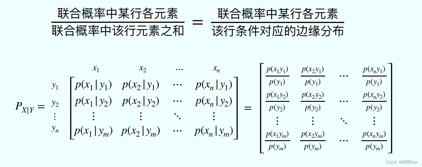矩阵每行的条件概率之和恒为 1 (每⼀行的条件要相同)