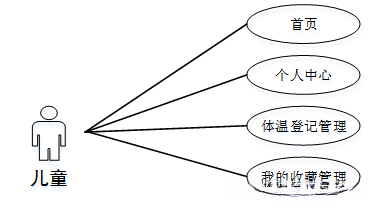 儿童进入系统可以进行首页、个人中心、体温登记管理、我的收藏管理等。儿童用例如图3-9所示。