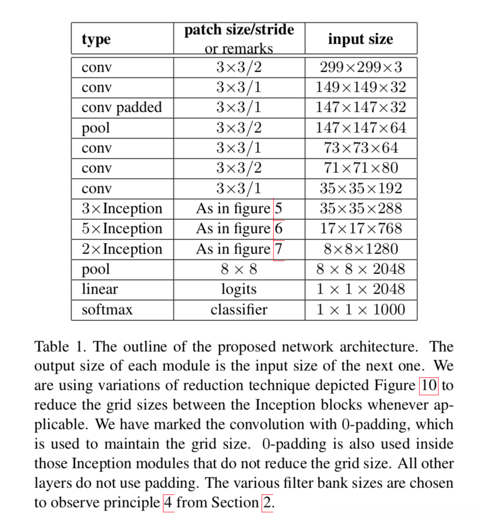 目前Inception的局限性在于其架构过于复杂, 导致难以实现对网络的具体修改. 在General Design Principles部分将详细阐述如何进行网络修改以及具体的修改标准和要求.