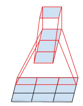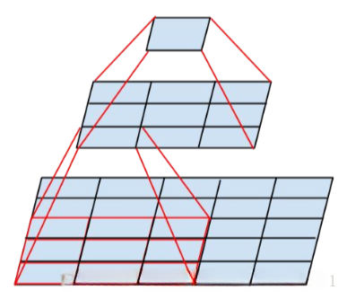 举个例子来说吧!把一个5 \times 5的卷积核拆分成两个3 \times 3的卷积核连接起来使用。如图所示,在这种情况下,这两个3 \times 3的卷积核正好覆盖了整个5 \times 5区域。计算一下的话,在这种设计下所需的计算量相当于之前的比例为\frac{18}{25}