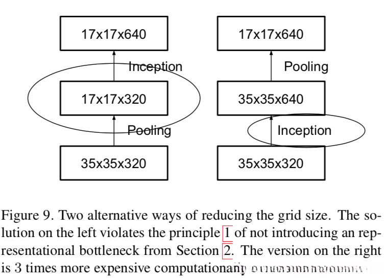 在Figure9中,左图违背了规则1,并可能导致representational bottleneck问题出现。右图所涉及的计算量较之左图增加了两倍多。相比之下,这两种方案均未表现出显著优势