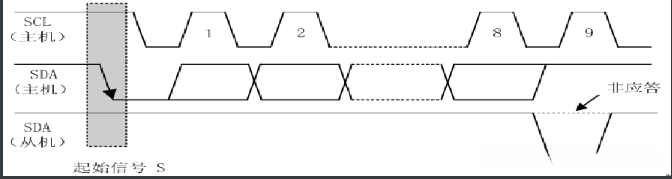 **1 > SCL线为高电平期间,SDA线由高电平向低电平的变化表示起始信号