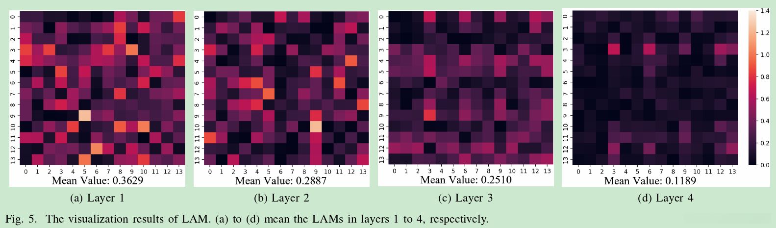 从图中可以看出,不同的层数具有不同的LAM,并且随着层数的增加,学习到的LAM的平均值越小。