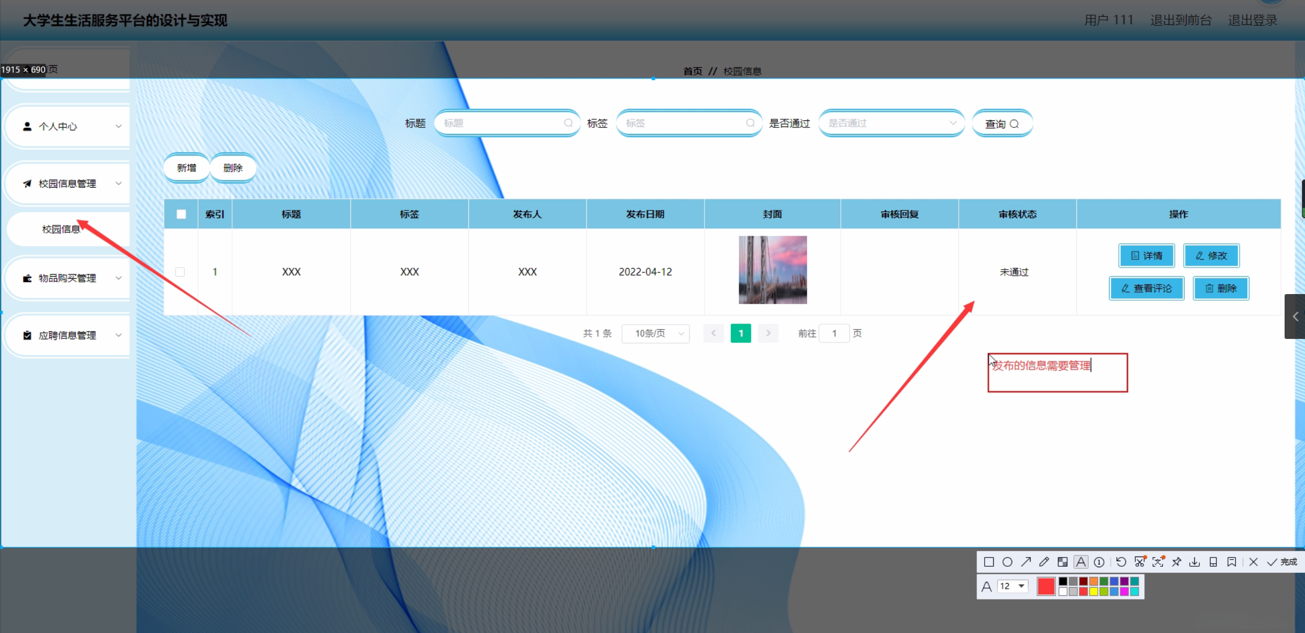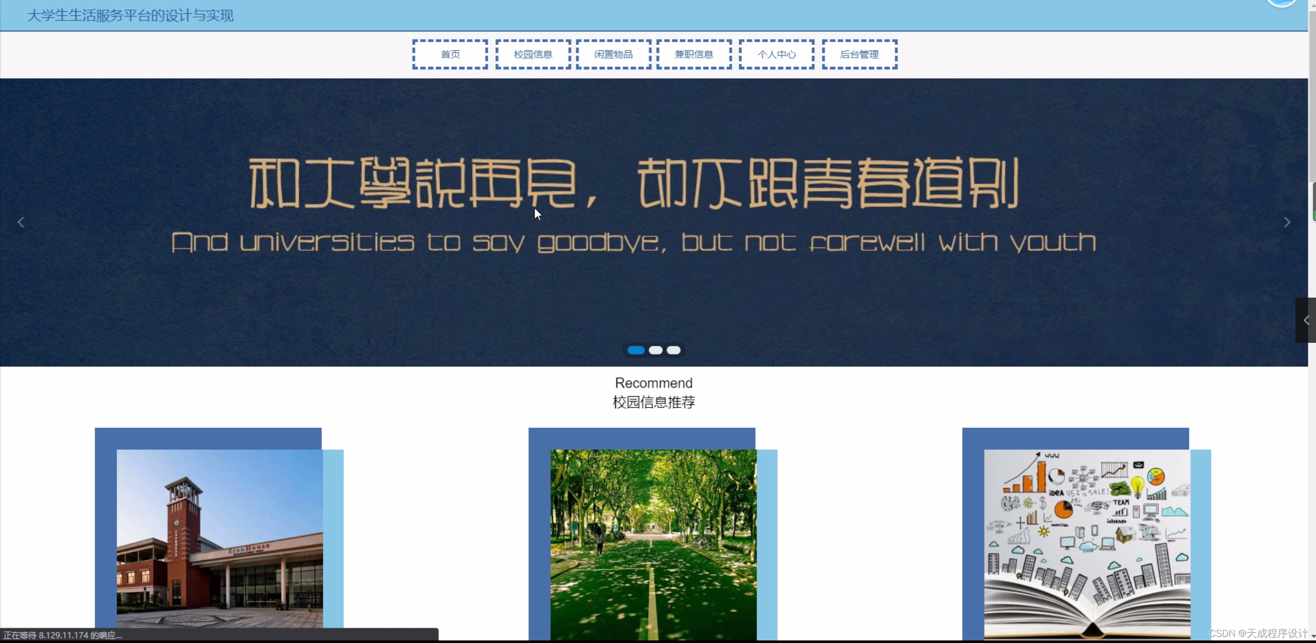选题背景: 在当今信息化社会,大学生生活服务平台的设计与实现显得尤为重要。随着互联网技术的飞速发展,大学生群体对于便捷、高效的生活服务需求日益增长。他们希望通过一个综合性的平台,能够轻松地获取各种信息和服务,从而提高生活质量和学习效率。然而,目前市场上针对大学生的生活服务平台还相对较少,且功能不够完善,无法满足大学生多样化的需求。因此,设计并实现一个针对大学生的生活服务平台,将有助于填补这一市场空白,为大学生提供更加便捷、全面的生活服务。