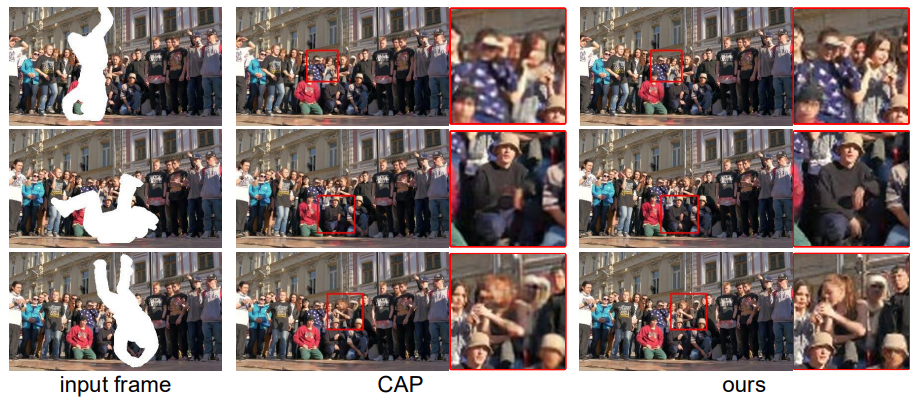 视频修复是一项挑战性的任务,以往的方法是逐帧修复,这会因为不连续的注意力结果而产生模糊和时序瑕疵。