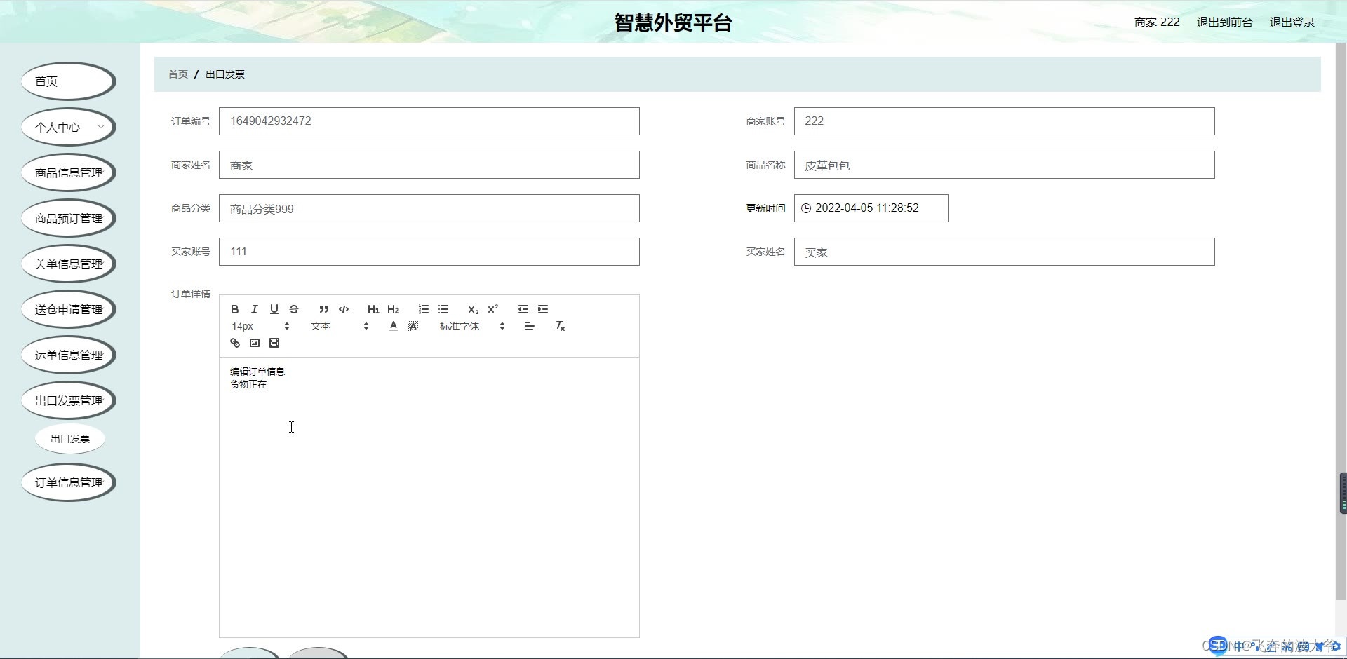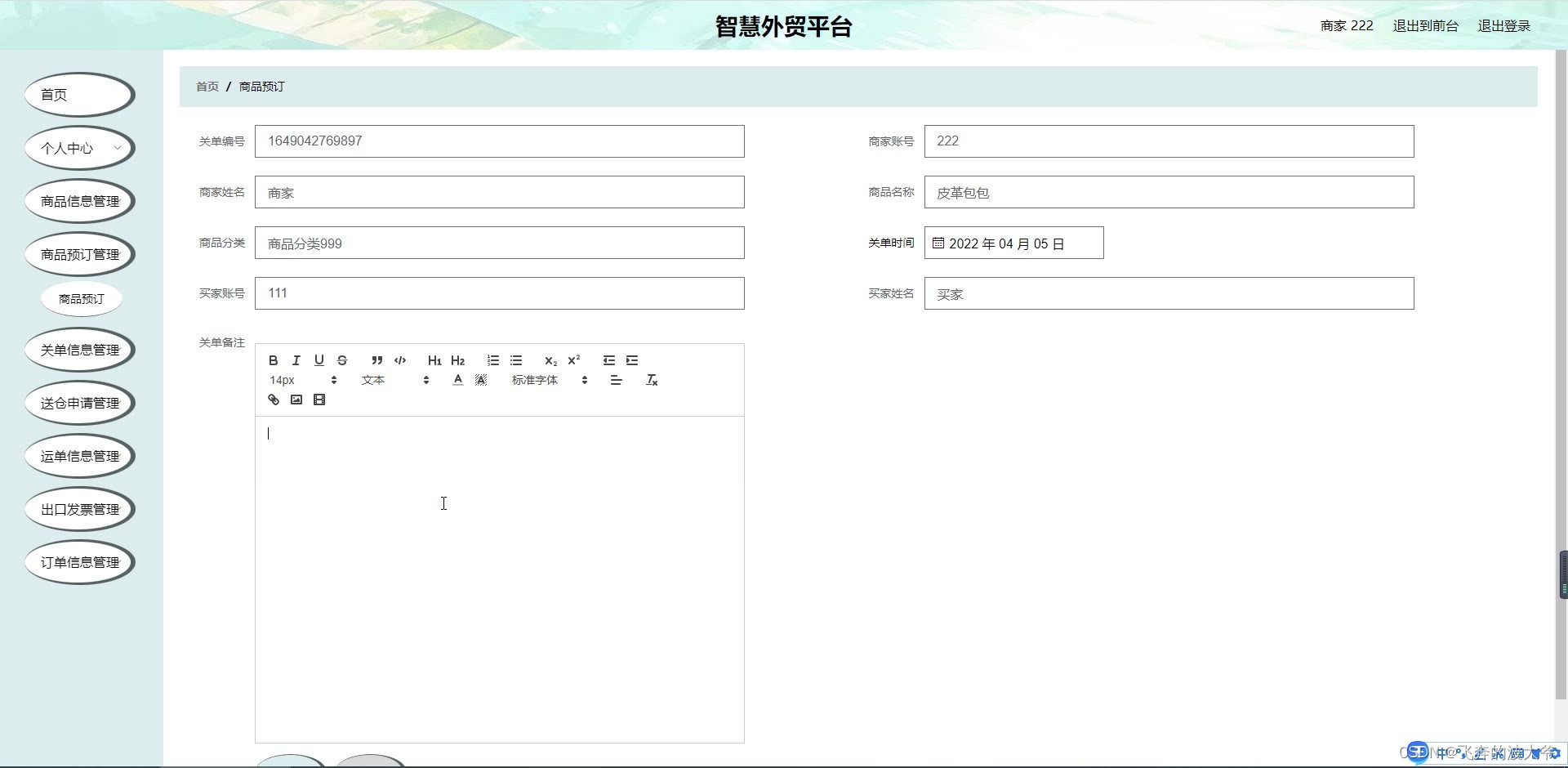 The extensive deployment of networks has significantly enhanced daily life. Furthermore, integrating intelligent foreign trade management systems with existing networks is essential for building an effective platform. Additionally, accumulating rich experiences in intelligentforeigntradelmanage ment can offer substantial support for advancing this field.