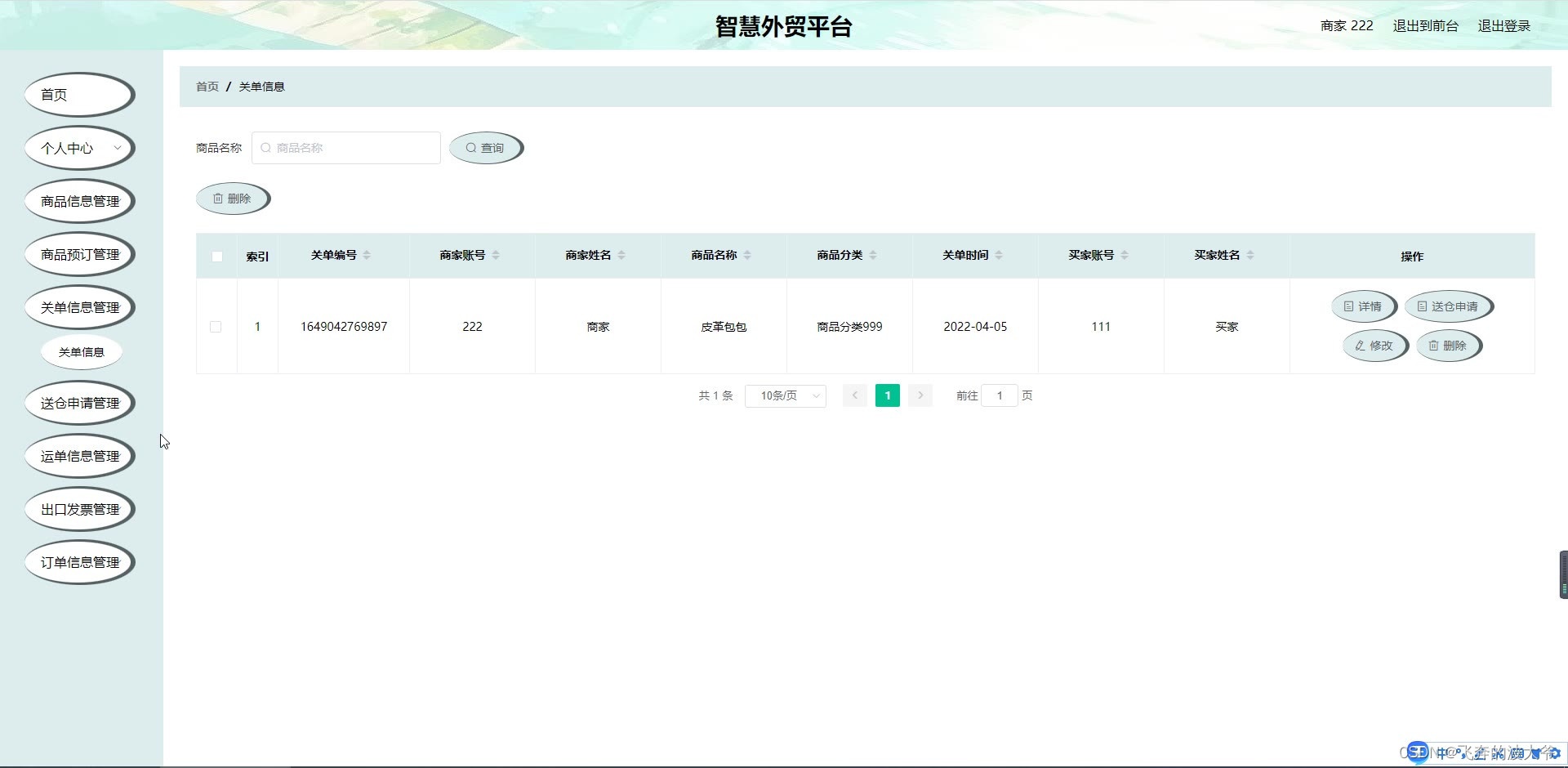 | guandanbianhao | varchar | 200 | 关单编号 | ||