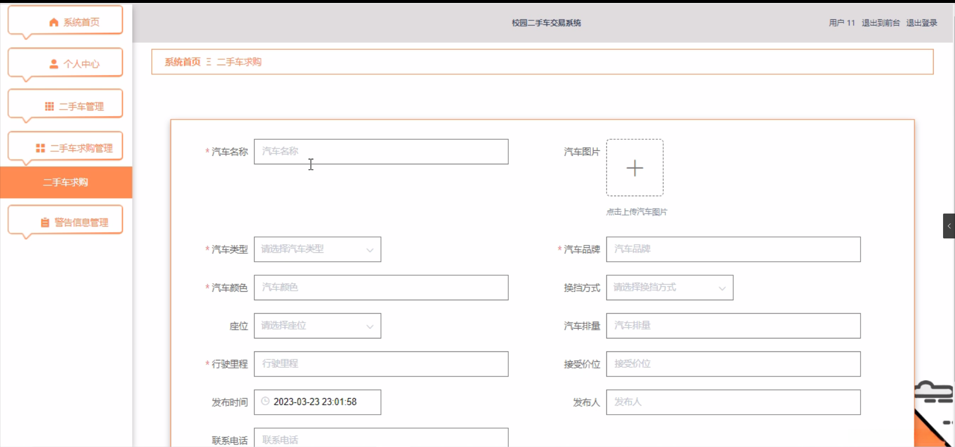 研究背景: 随着社会的进步,校园二手车交易市场的需求得到了显著的增长。然而,在现有的校园二手车交易平台中普遍存在功能单一性问题,并不能够充分满足参与者的实际需求。因此,在当前技术与经济条件下构建一个集成了多种功能、能够有效提升服务效率的校园二手车交易平台系统对于完善相关产业链、提升服务效率具有重要意义。