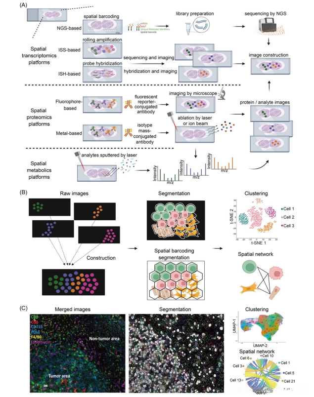 在过去十年中,单细胞技术揭示了肿瘤免疫微环境在基因组、转录组和蛋白质组水平上的异质性,加深了我们对肿瘤发展机制的理解。单细胞技术也被用于识别潜在的生物标志物。然而,这些方法丢失了有关肿瘤免疫微环境的空间信息,例如细胞位置和细胞间相互作用组。
