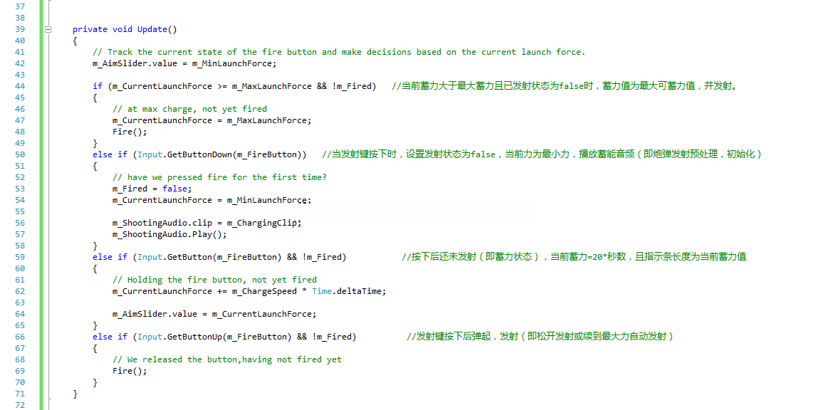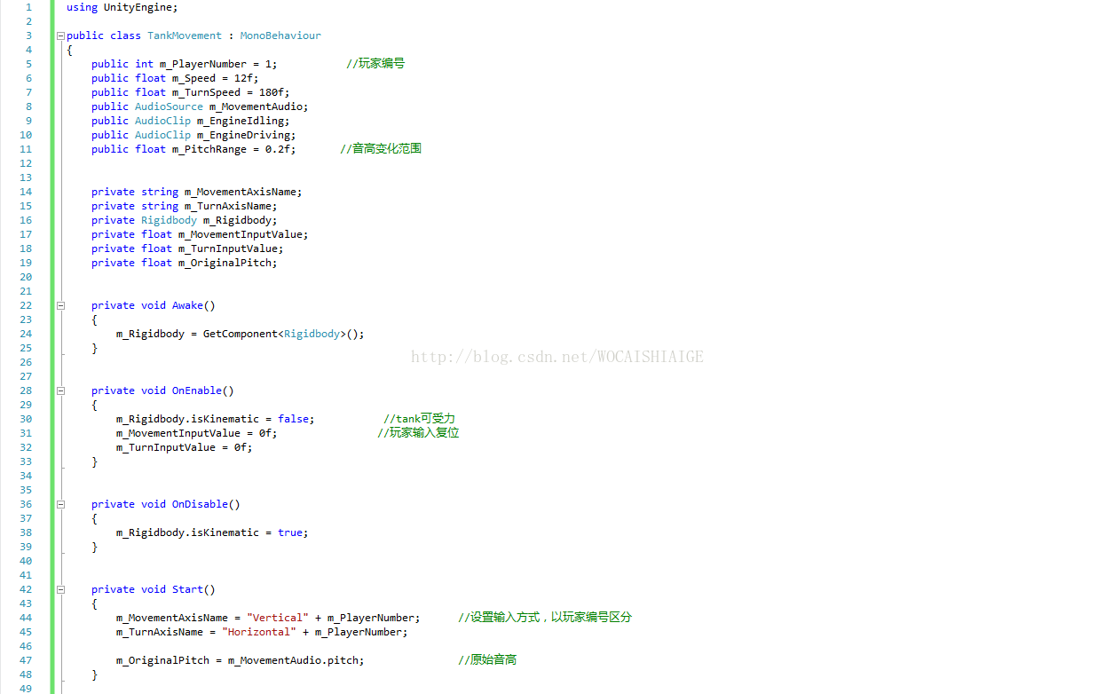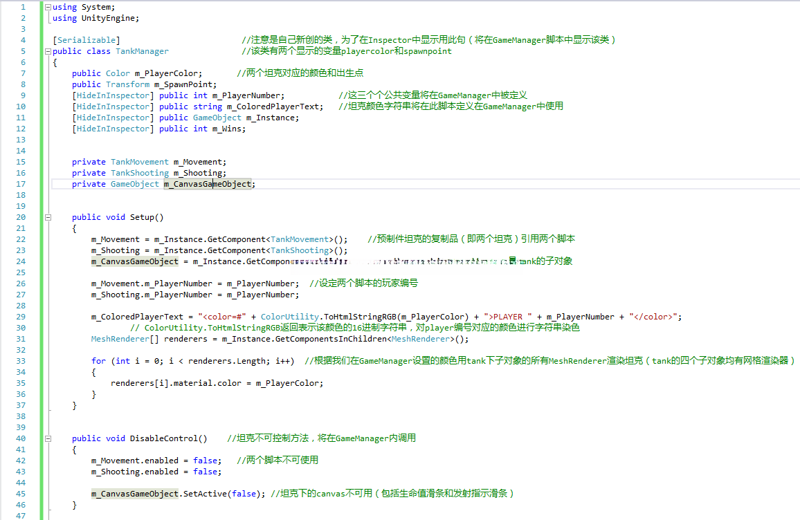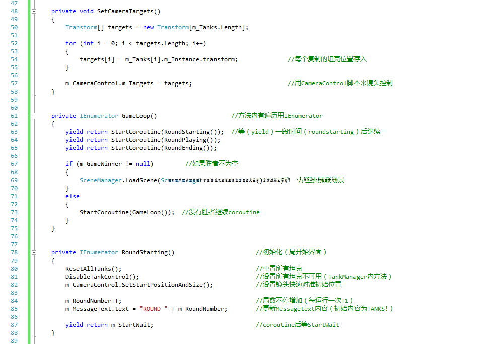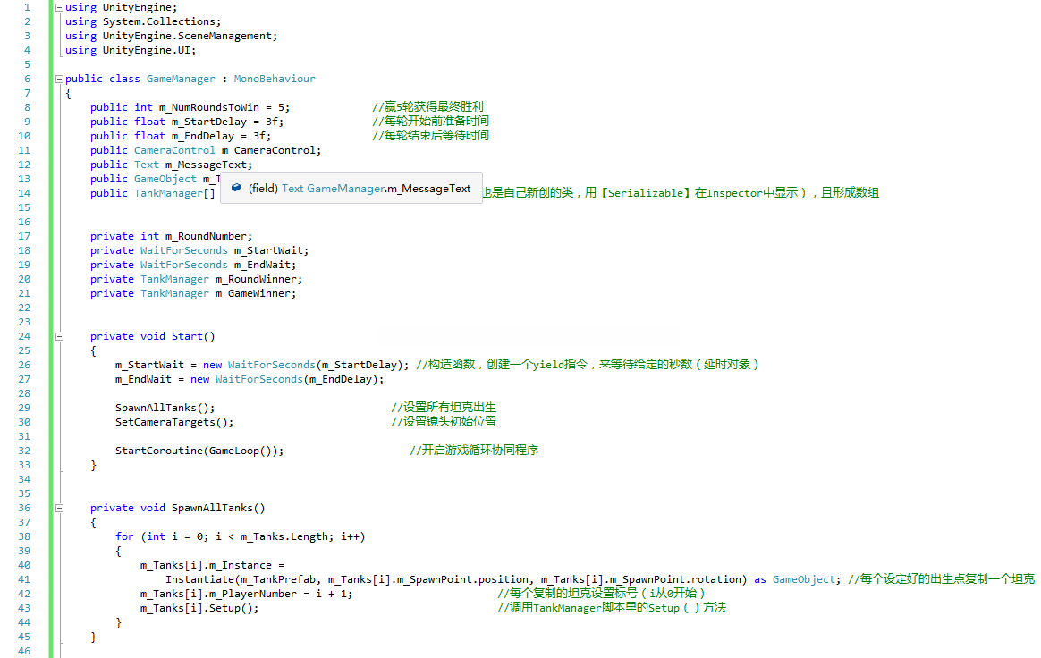 在GM脚本中完全包含了TM脚本(其中TM被定义为GM的直接继承体),因此TM无需被导入到任何游戏对象中,并且TM无需继承MonoBehaviour(即直接调用其start和update方法)。基于此逻辑,我们接下来深入分析TM脚本的行为模式。