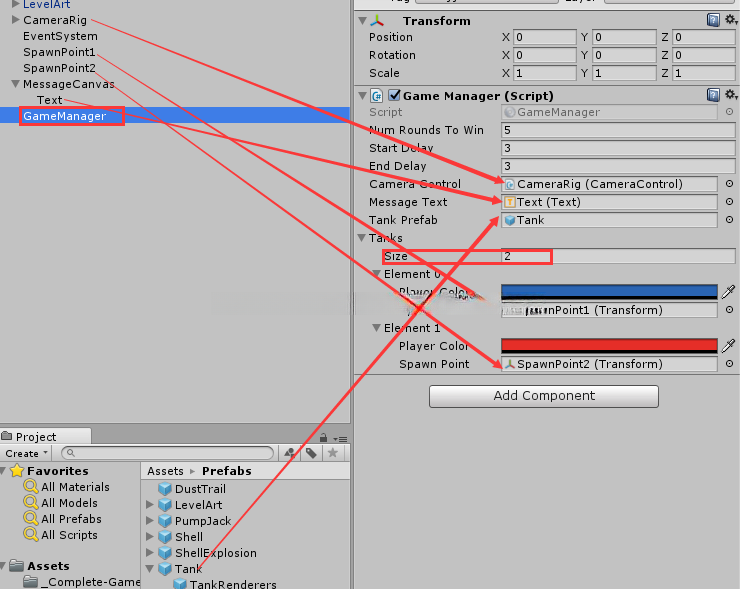 保存后回到unity将Tank拖入脚本里的Targets下。