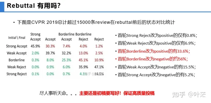 Rebuttal的作用非常有限,还是要好好准备初稿,保证高质量投稿 !