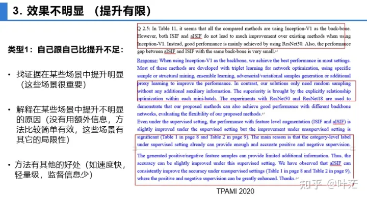 审稿人指出,该方法在效果提升方面存在明显不足,主要体现在两个方面:首先,自身内部比较,部分组件的性能提升并不显著;其次,与其他方法相比,效果提升有限。