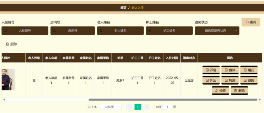 | 3 | 老人查询 | 张三丰 | 页面跳转,显示张三丰信息 | 正确 |