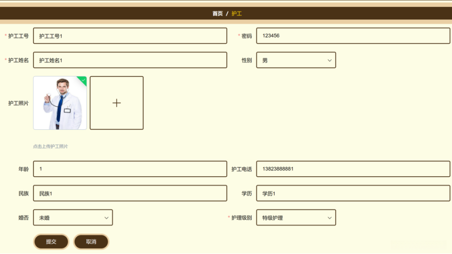 | 1 | 系统用户 | 111(护工) | 页面跳转,显示111信息 | 正确 |