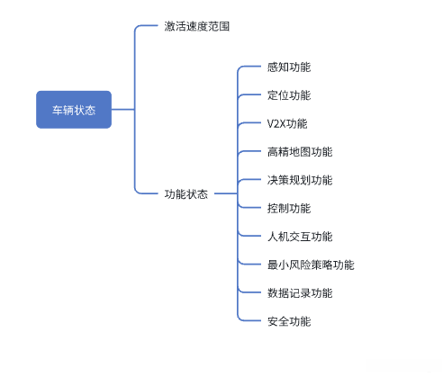 自动驾驶系统安全启动所需的功能状态指标是各功能模块完成自我检测并达到一致的状态。这一状态需包含系统的软硬件功能状态信息,并满足实现自动驾驶系统安全运行的必要条件要求。