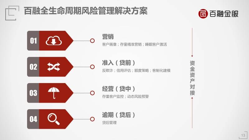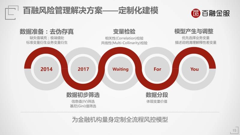 我们为金融机构提供定制化的服务,因为你的产品和你的客户跟别的金融机构不可能一模一样。我们的模型可以有差异化,数据的准备、初步筛选、交验检验,筛选相关性比较高的变量、数据的分段,最后建立模型。