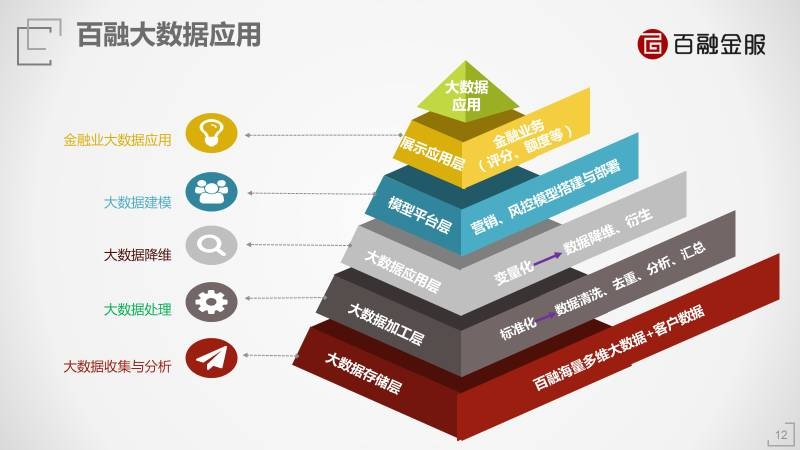 第四步,数据建模。 金融里有两个模型最重要:第一类是营销获客模型 ,预测什么人需要什么样的金融服务,主要是预测客户的需求。第二类是风控模型。 第五步,大数据应用。 不同的行业做的应用不同。