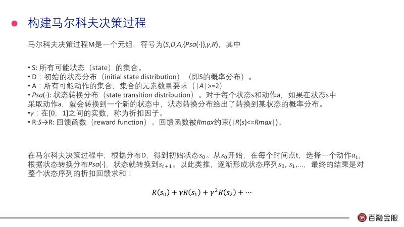 我们应该从序列的观点看,因为不同的人对不同动作的响应是不一样的。实际上你每一步的动作都会影响到后续的结果,应该以整个过程的最大的回馈,来决定我们在什么环节采取什么样的动作。这块我们就把催收过程定义成一个马尔科夫决策过程。