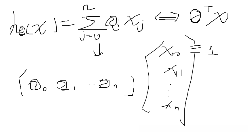 如果要把model写成hθ(x)=θ^TX的话,x0=1