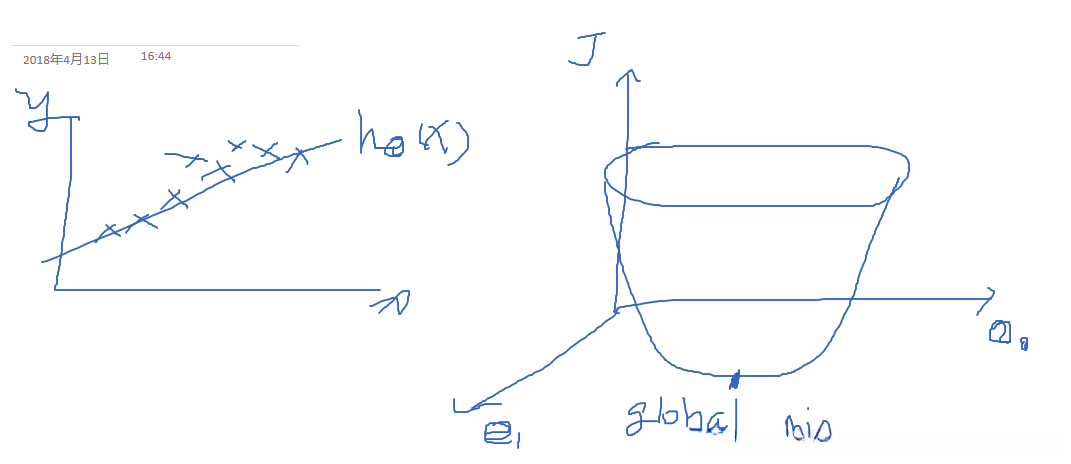 例子:对于简单一元线性回归 y = θ0+θ1x, J(0)就是y = 0