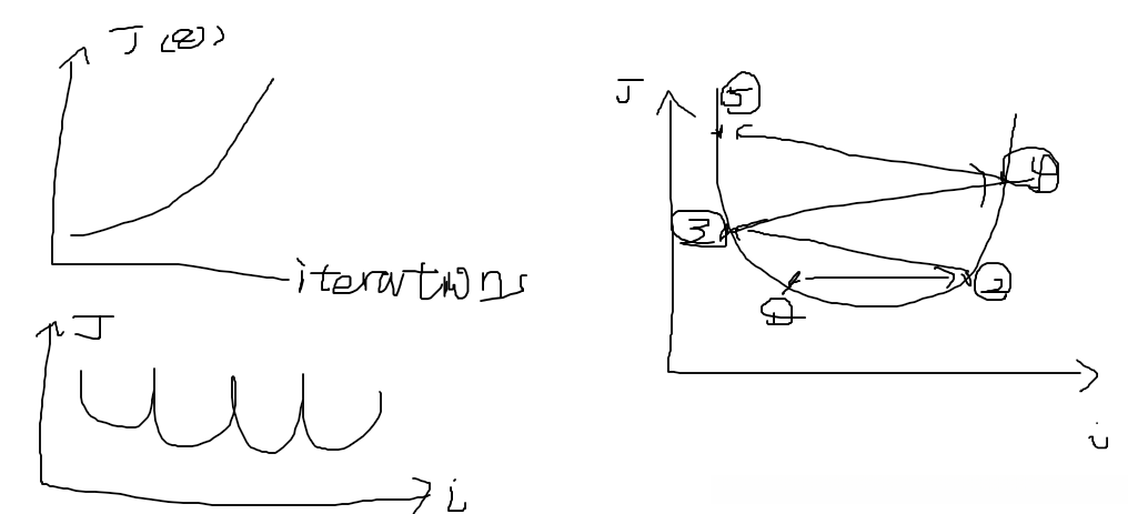 对于下图左边两种情况,很可能是α太大了,一次跨的幅度太大