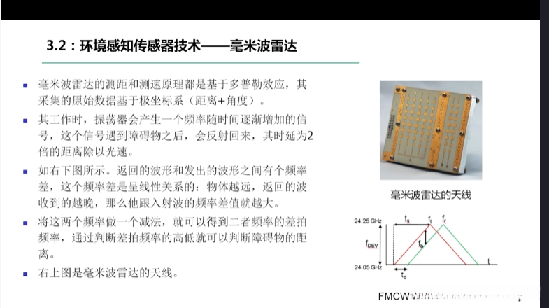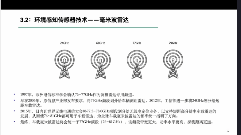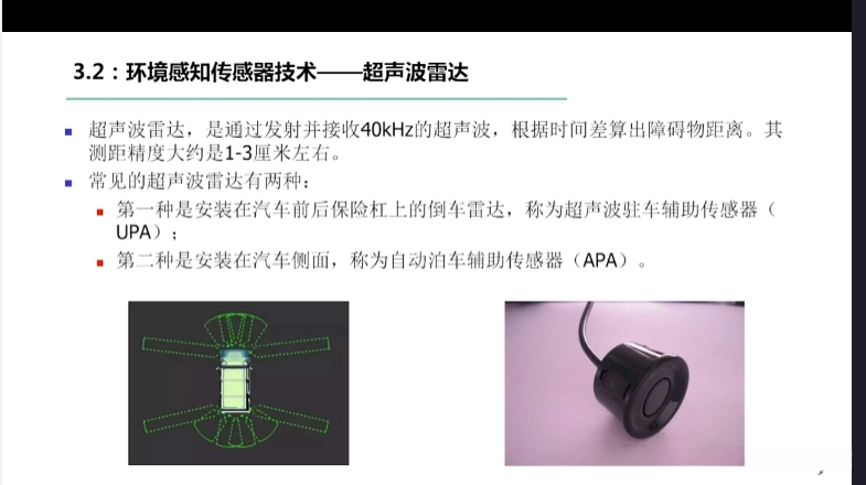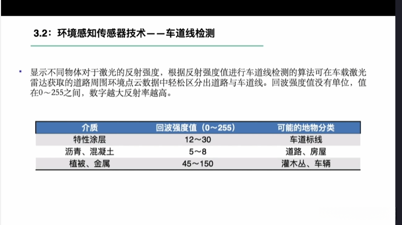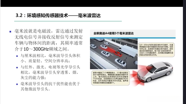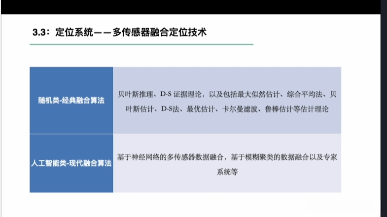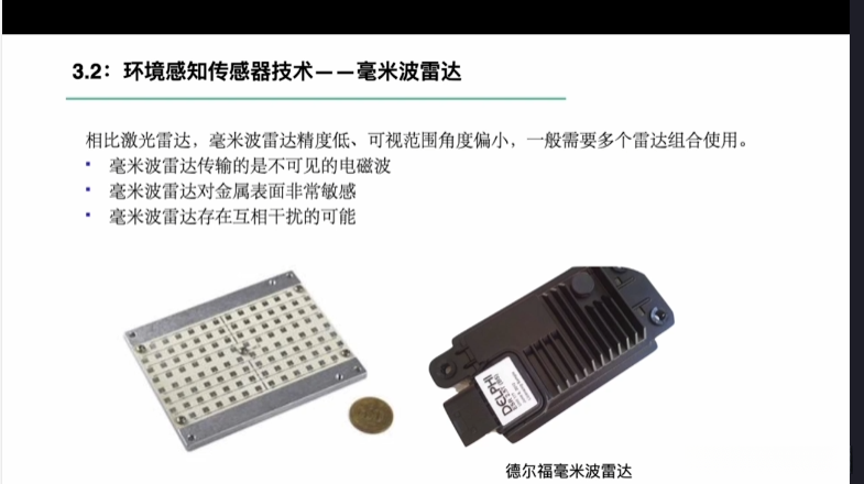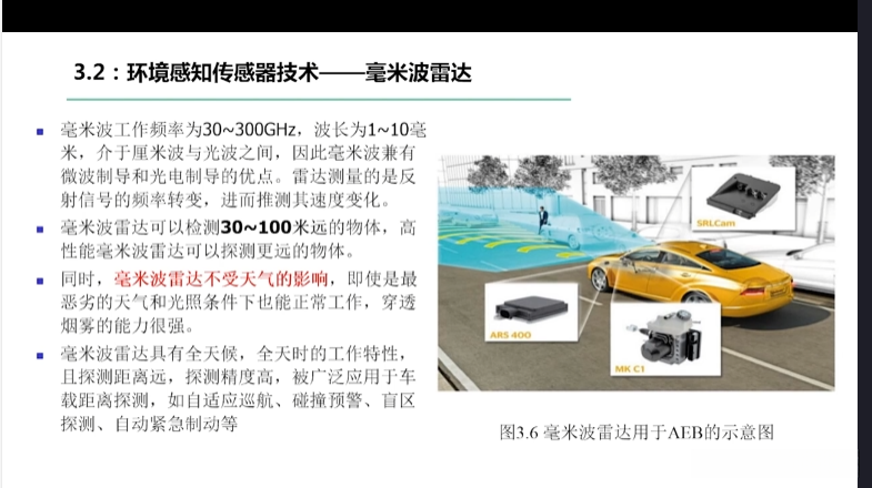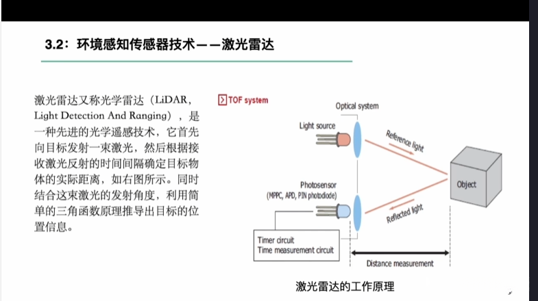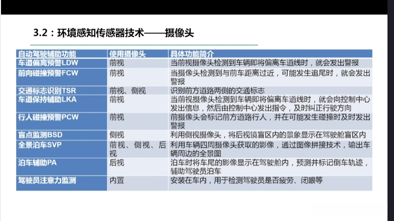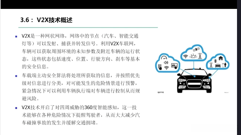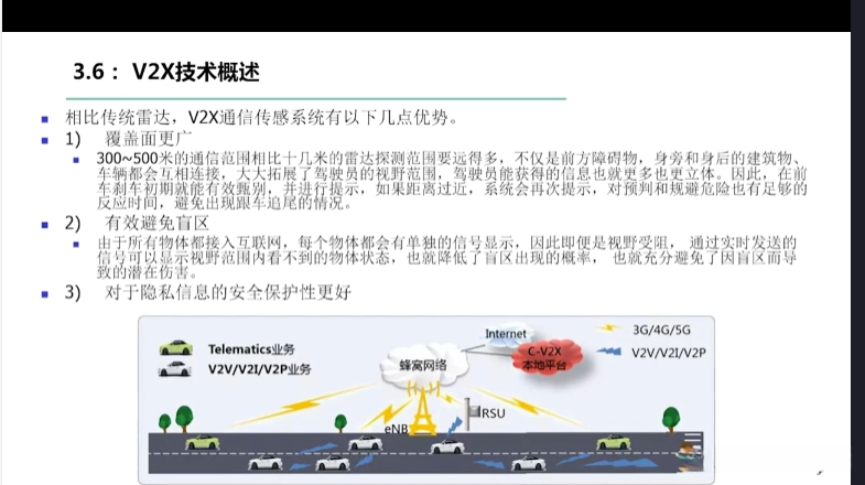 第一章自动驾驶技术概论第三节自动驾驶汽车技术架构 3.1自动驾驶汽车整体架构 3.2环境感知传感器技术 3.3定位系统 3.4定位系统高精地图技术概述 3.5规划与决策系统概述 3.6V2X技术概述