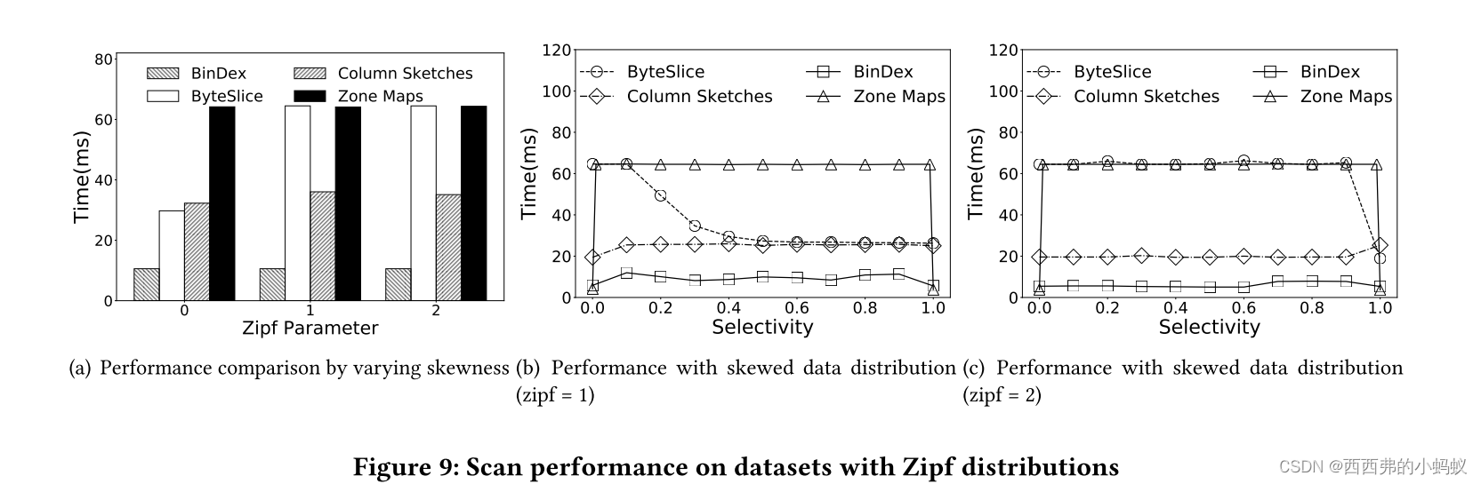 倾斜系数从zipf = 0(均匀分布)到zipf = 2(严重倾斜分布)不等