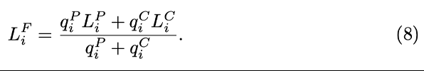 融合模块采用每个 G P节点和 G C 的对应节点,并为该节点计算一个新的对数向量,作为 Li P 和 Li C 的加权平均值。 权重决定了每个模型在最终预测中的贡献,因此必须与每个模型的置信度成正比。 因此,我们计算融合 logits 为: