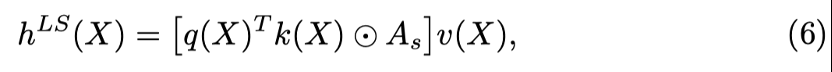其中 q、k、v 是查询、键和值头,每个都是完全连接的网络,通常(但不一定)具有单个线性层。局部注意力是相同的,除了查询只能与其直接邻居节点的键进行交互。例如在主语头部中,