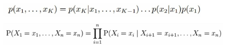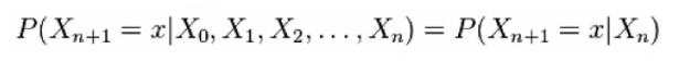 结点形成一条链式网络,称作马尔科夫模型。Xi+1只与Xi有关,与Xi…Xi-1无关。