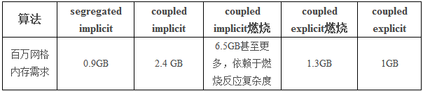 该刀片服务器单机柜配备的标准配置能够支撑最多80个并行计算核以及80GB内存的运行,并可处理最大值为8千万网格单元的空气动力学CFD模拟(包括显式求解与分离求解两种方法)。以Fluent为例, 下表列举了不同计算模式下计算模型对系统硬件资源主要是内存的需求