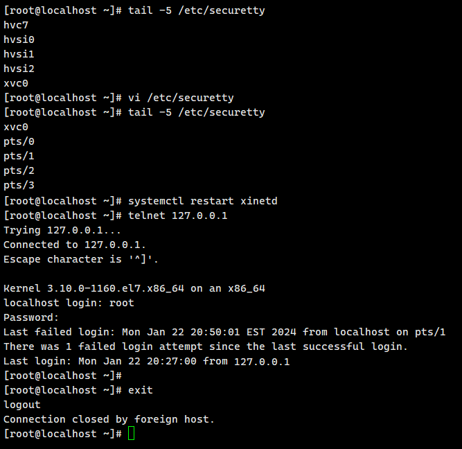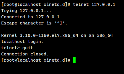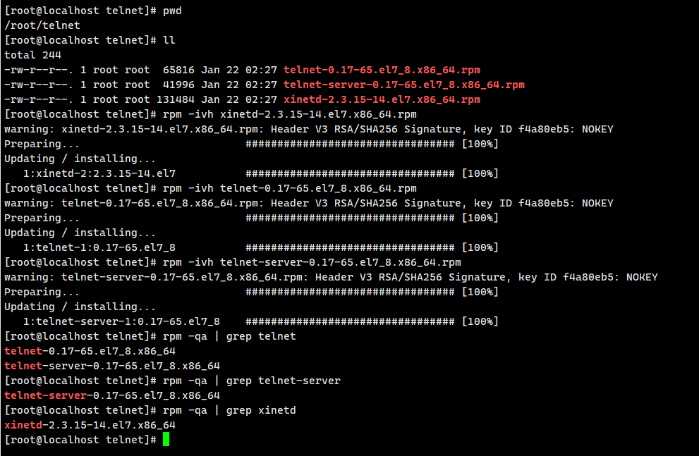 rpm -ivh telnet-server-0.17-65.el7_8.x86_64.rpm