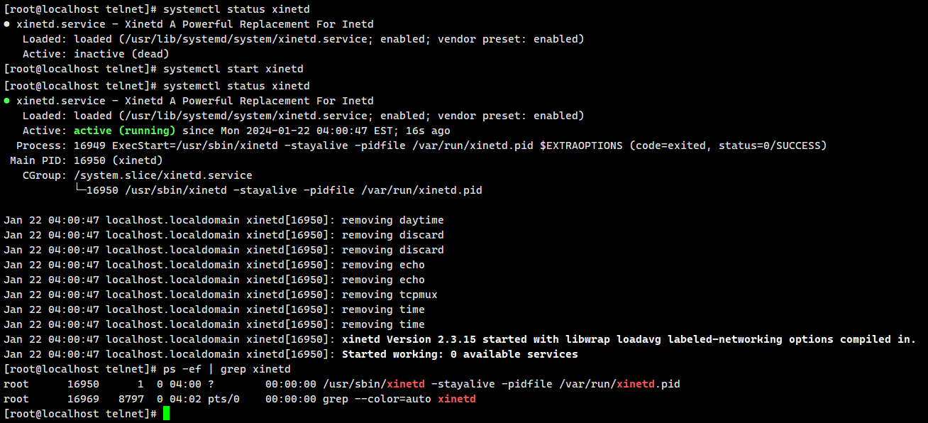 ps -ef | grep xinetd