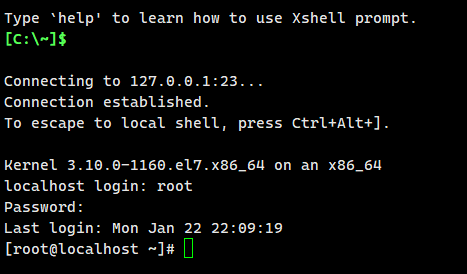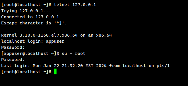 telnet 127.0.0.1