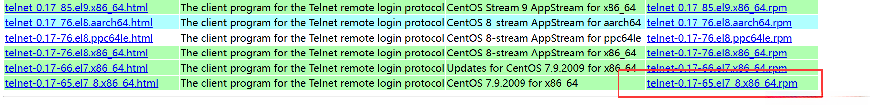 telnet :telnet-0.17-65.el7_8.x86_64.rpm