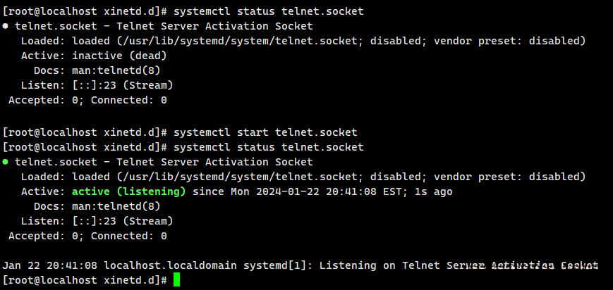 systemctl start telnet.socket