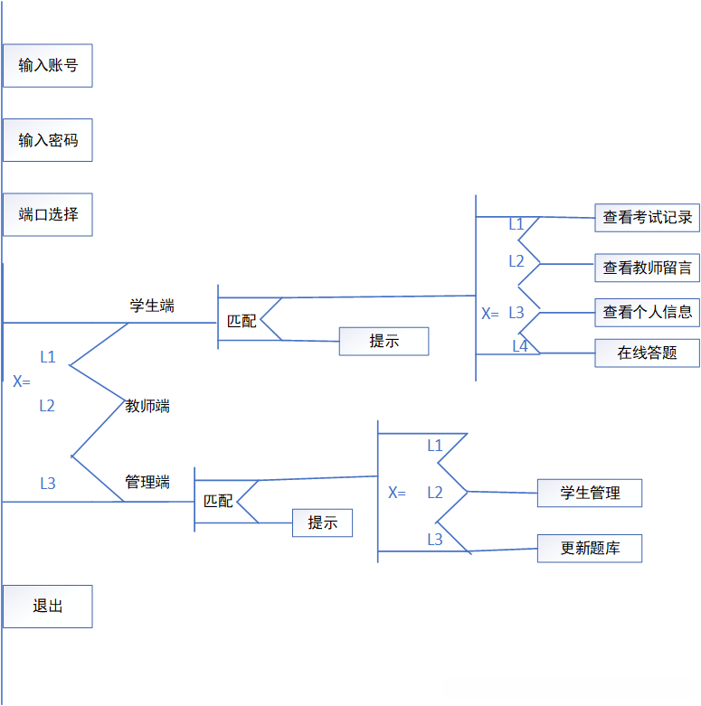根据学生端以及管理端对应的功能绘制出模块结构图如下: