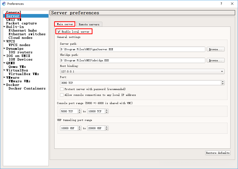 启用本地服务,在Enable local server前面的多选框选中,其他参数不需要修改。