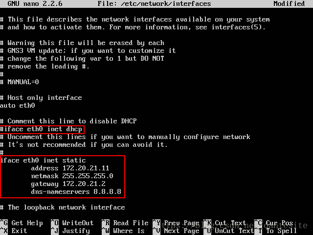修改完成后按Ctrl+X键退出,输入y/Y键保存然后按任意键重启系统。启动后看是不是自己设置的地址或者长时间停留在启动界面,这是因为网络参数设置错误,需要重新设置。