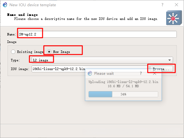 填写名称,选中新镜像,点击Browse加载镜像完成上传。