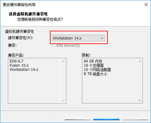 在选择虚拟机硬件兼容性时选择“Workstation 14.X”,其他选项根据个人喜好设置。